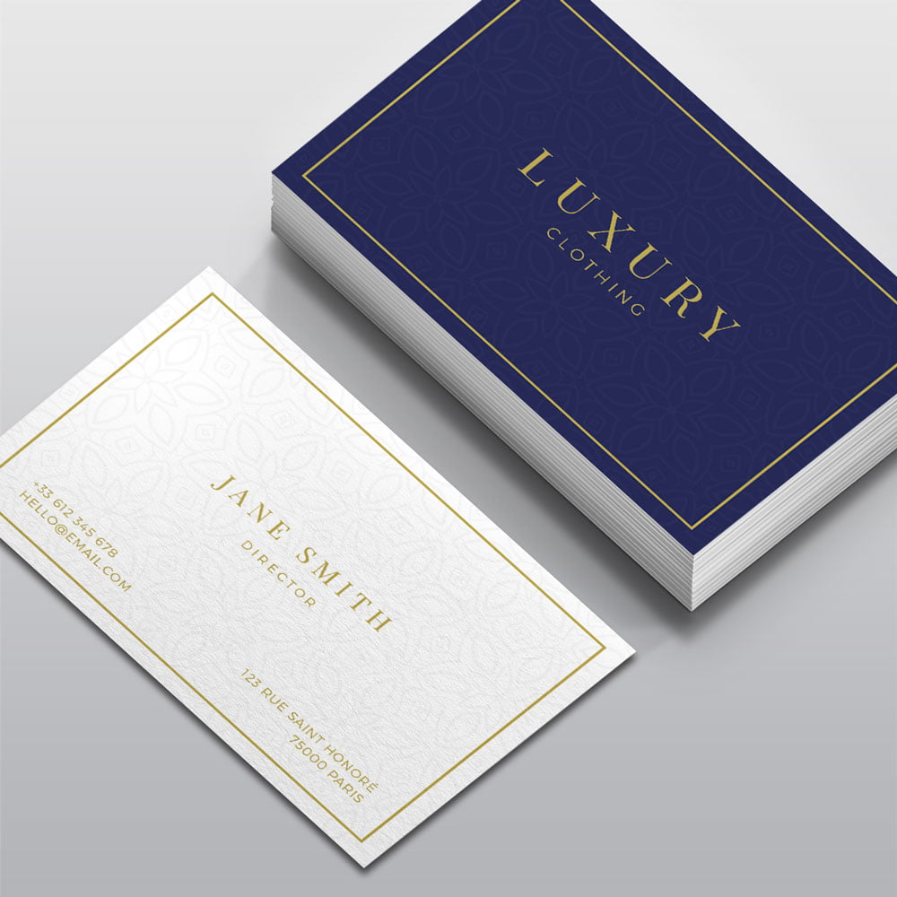 La carte de visite professionnelle class est imprimée sur un papier couché mat 350 g/m², en recto unique. Elle est imprimée puis pelliculé mat recto verso.